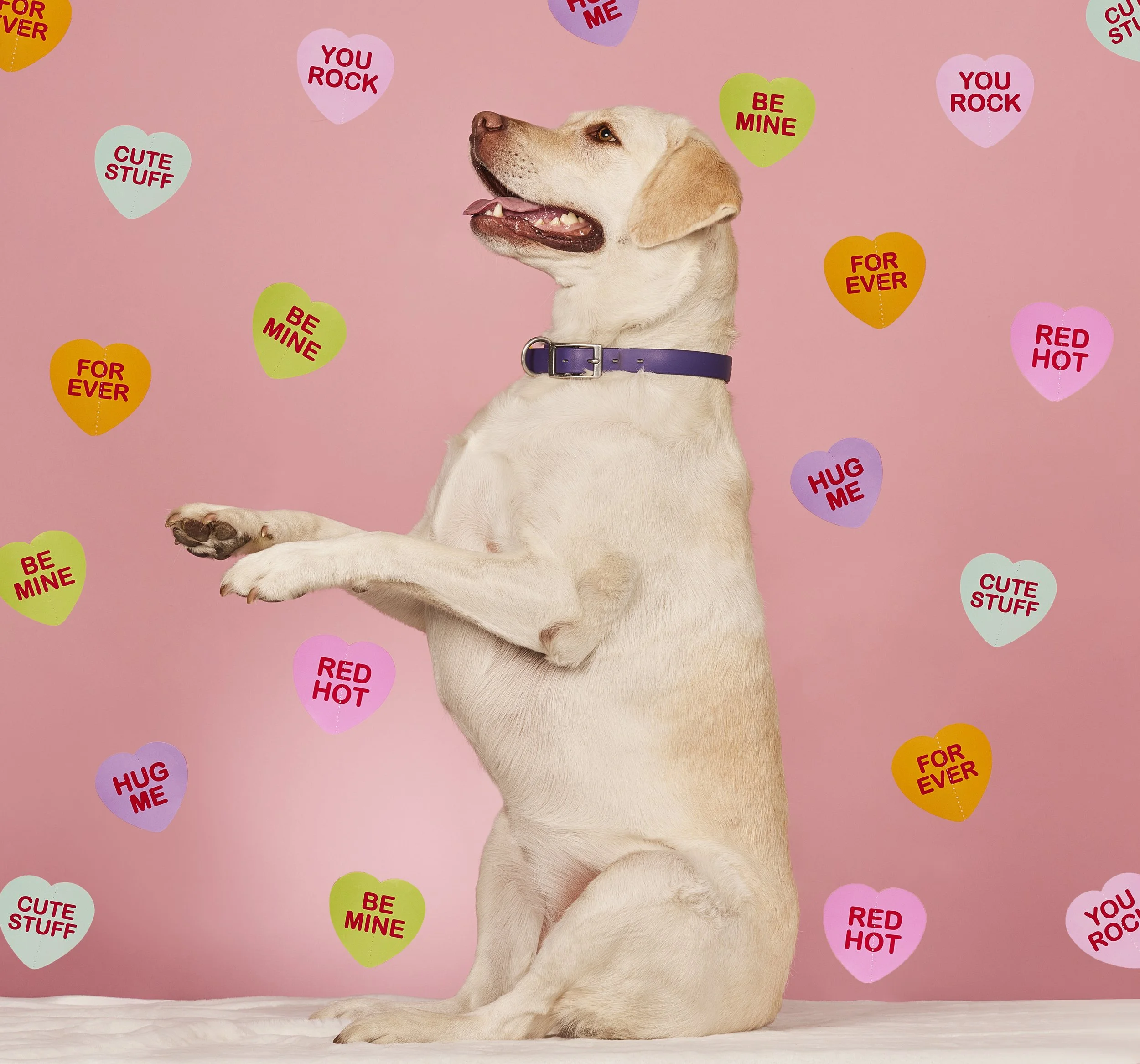 Woof you be mine? We were feeling the puppy love this month at our Valentine’s Day photoshoot pop-up with Erin Wiese Photo. Check out all the adorable pups and love-themed outfits on this adorable pink conversation heart backdrop!